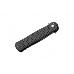 Рукоять – сочетание металла и пластика, практична и удобна для каждодневного использования (EDC). Механизм выброса основан на схеме button lock (кнопочный замок). Также, для предотвращения случайного раскрытия выкидной нож 9054 снабжен очень удобным предохранителем, расположенным на его корпусе.