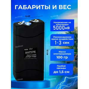 ОСА 800 - лучший электрошокер по соотношению мощность/компактность, из представленных на украинском рынке. При своих небольших габаритах, он имеет мощный аккумулятор, заряда которого хаватае надолго. Прорезиненный ABS - пластик (материал из которого изготовлен шокер) исключает обратный переход разряда.