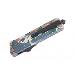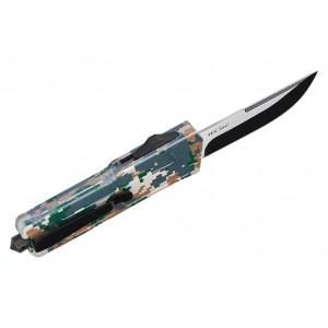 Выкидной нож Grand Way 9182 BC оснащён механизмом двухоперационного типа (Out The Front Double Auto). Иными словами, смещённый вперёд слайдер вызыват выброс клинка вперёд, смещённый назад – убирает клинок обратно в рукоять.