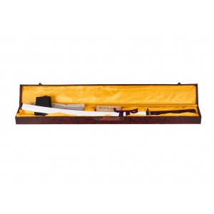 | Комплектация | Подарочная деревянная коробка, обянутая красным шелком, деревянная подставка, тканевый чехол, набор по уходу за катаной. |