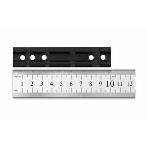 По сути, кронштейн представляет собой стальную вентилируемую рельсу с прорезями, с помощью которых можно зафиксировать устанавливаемое устройство в нужном положении при помощи болтов либо рычагов. Благодаря прорезям положение устройства можно гибко варьировать по желанию стрелка. Крепление получается надёжным, сама планка лёгкой. К тому же, обеспечивается охлаждение, благодаря чему кронштейн не меняет размеры и форму от перепадов температур.