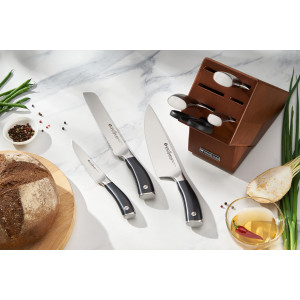 Этот нож похож на небольшой прямой меч. Он создан, чтобы в одно лёгкое движение нарезать аккуратными кусочками мясо, ветчину или колбасу. Все разрезы будут ровными и аккуратными, а все кусочки ровными и одинаковыми.