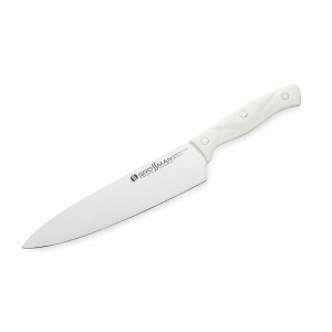 200 мм качественной немецкой стали и чрезвычайно удобная рукоять с накладками из стойкого белого пластика! Настоящий король кухни и первый друг настоящего шеф-повара!
