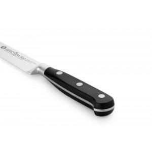 Нож для нарезки из серии ELITE PRO отличается классическим европейским дизайном: длинный прямой клинок, прочная рукоять из пары накладок и надёжного стального хвостовика.