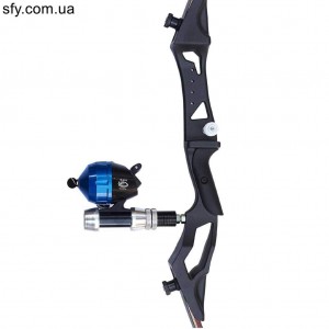 Лук снабжен готовым к работе набором-комплектом для рыбной ловли – катушкой, линем (нитью-тросом), специальной полочкой для стрел-гарпунов и крепежом для монтажа всего комплекта на рукоять лука.