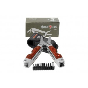 | Дополнительная информация | плоскогубцы, кусачки, нож, лезвие с серррейторной заточкой, битодержатель, набор бит, напильник, бутылочная открывалка, консервный нож, зачистка изоляции, прямая отвертка, шило, крестовая отвертка, пила |