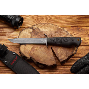 Рукоять ножа выполнена из резинопластика. Что тоже отхождения от оригинала, но только в лучшую, более прогрессивную сторону. Современный материал только повышает эргономические качества рукояти и прекрасно переносит воздействие факторов окружающей среды.