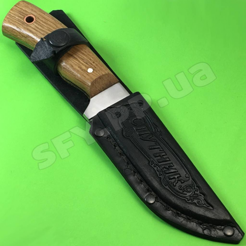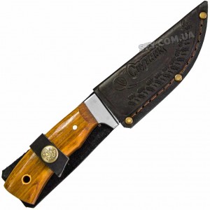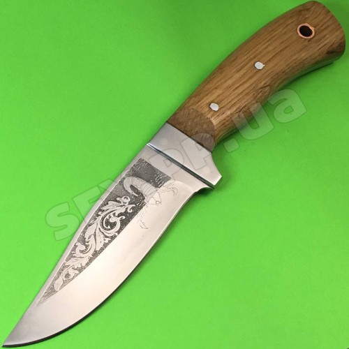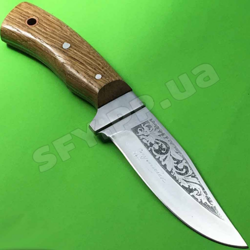 Изображение на клинке ножа может варьироваться от представленного на данном фото, так как изготовитель может изменять вид гравировки без ведома. Оттенок дерева на рукояти и кожаных ножен может отличаться от представленного на фото.