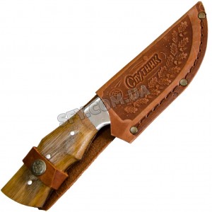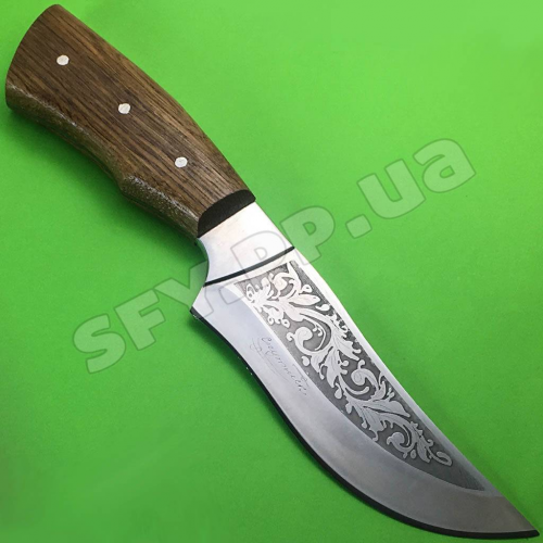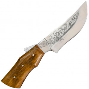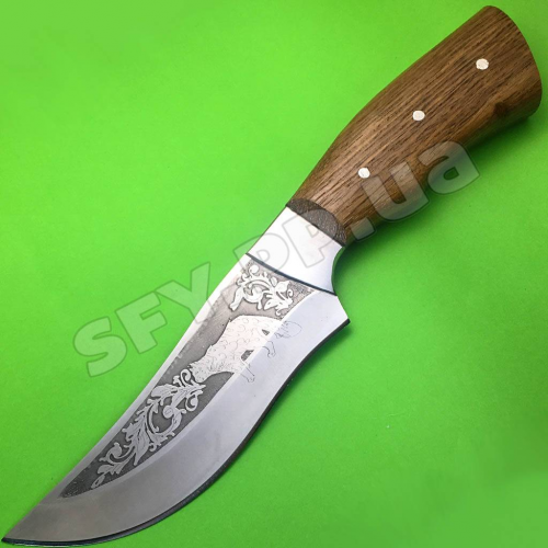 Изображение на клинке ножа может варьироваться от представленного на данном фото, так как изготовитель может изменять вид гравировки без ведома. Оттенок дерева на рукояти и кожаных ножен может отличаться от представленного на фото.