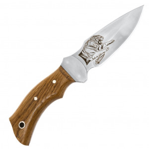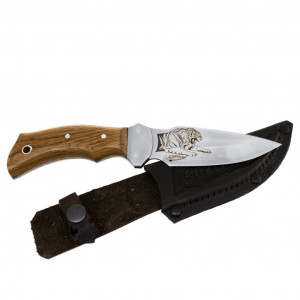 Изображение на клинке ножа может варьироваться от представленного на данном фото, так как изготовитель может изменять вид гравировки без ведома. Оттенок дерева на рукояти и кожаных ножен может отличаться от представленного на фото.