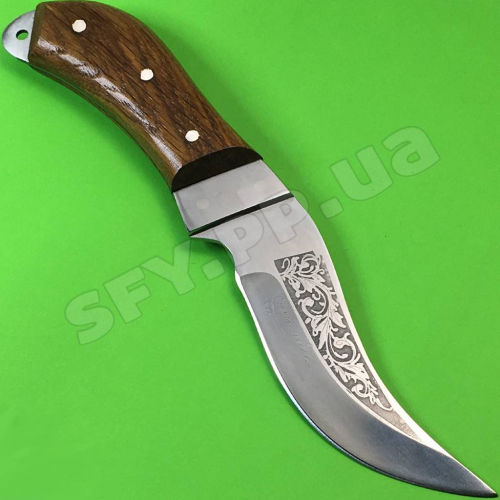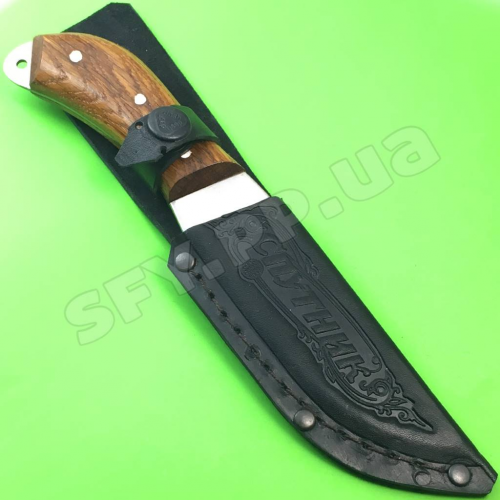 Изображение на клинке ножа может варьироваться от представленного на данном фото, так как изготовитель может изменять вид гравировки без ведома. Оттенок дерева на рукояти и кожаных ножен может отличаться от представленного на фото.