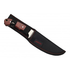 Зручне дерев'яне руків’я має конструкцію фултанг. Тобо – це заточена смуга нержавіючої сталі, на яку в районі рукояті наклали дерев'яні накладки. Подібні ножі давно славляться своєю винятковою надійністю.