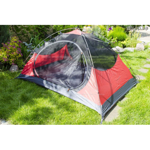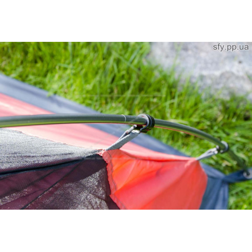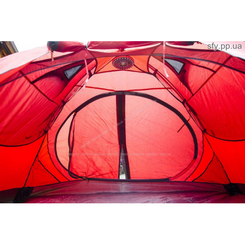 Палатка имеет два вентиляционных клапана. Палатка JY 1528 очень просто и быстро собирается/разбирается благодаря системе крепления пластиковыми клипсами к алюминиевому каркасу. Имеет два D-образных входа и возможность натяжки центрального входа тента, как дополнительного навеса.