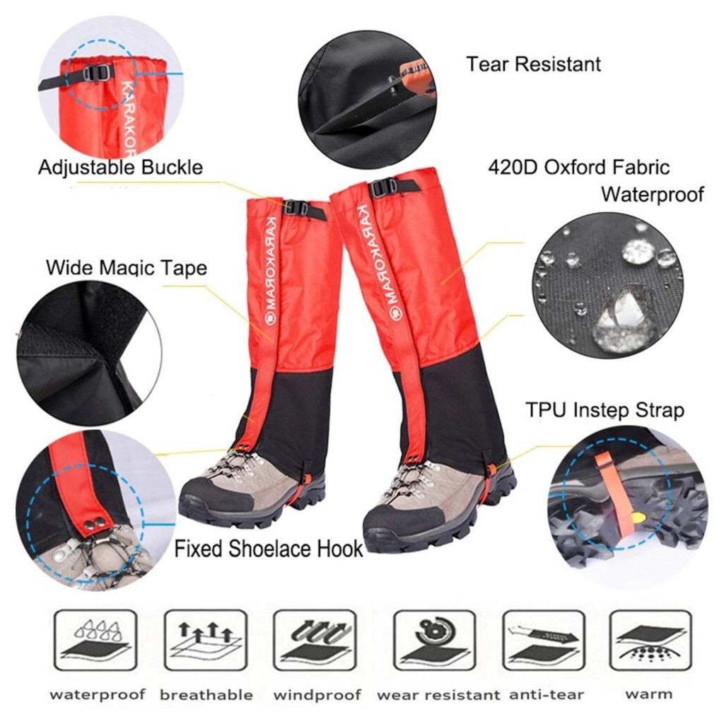 Гамаши Karakoram предназначены для защиты ботинок от проникновения воды, камней и грязи. Непромокаемая обувь из качественной кожи или с хорошей мембраной имеет один досадный недостаток: если она всё-таки промокает, то потом очень долго сохнет. Камушкам внутри обуви тоже делать нечего, так что нельзя оставлять зазор между штанами и верхом ботинка незащищённым.