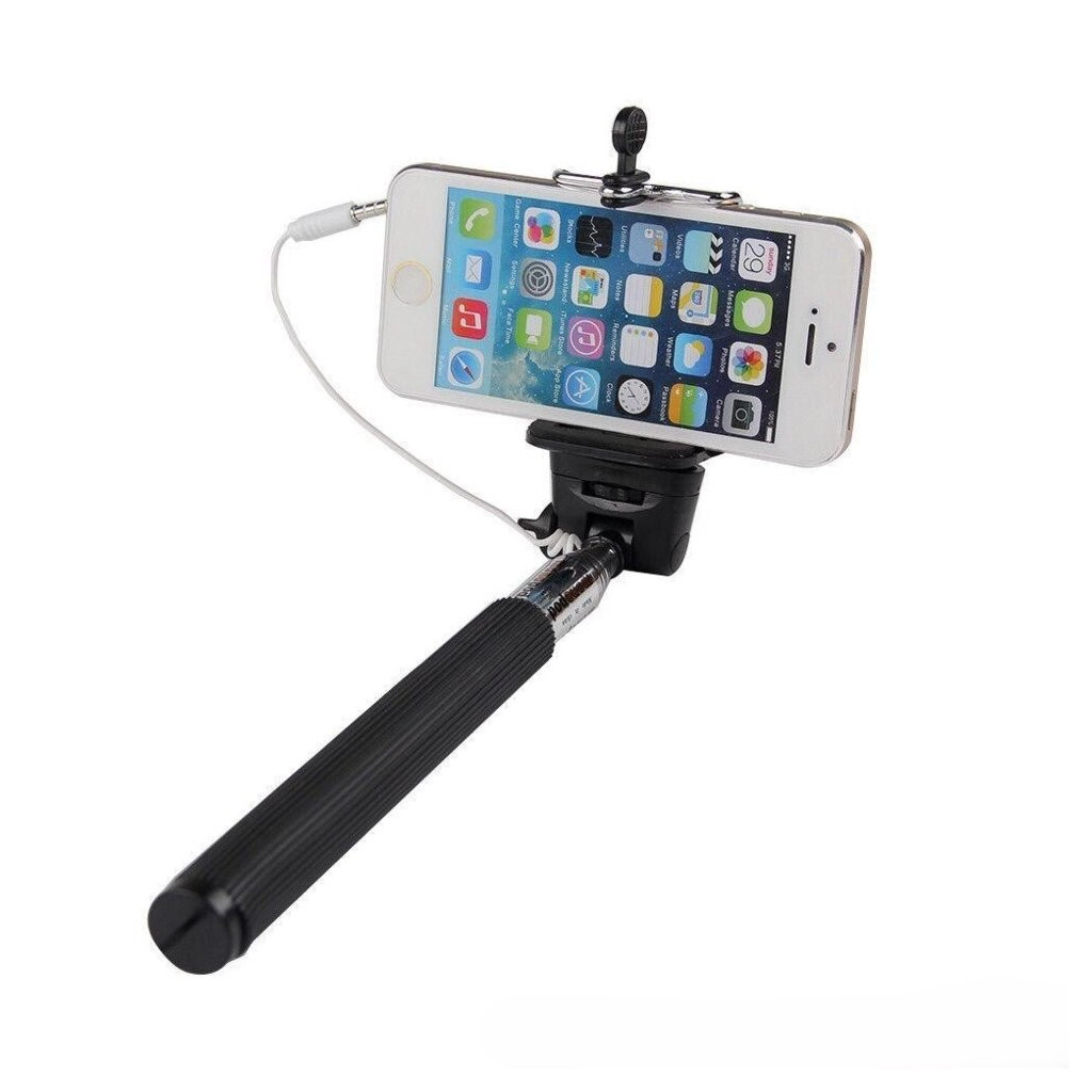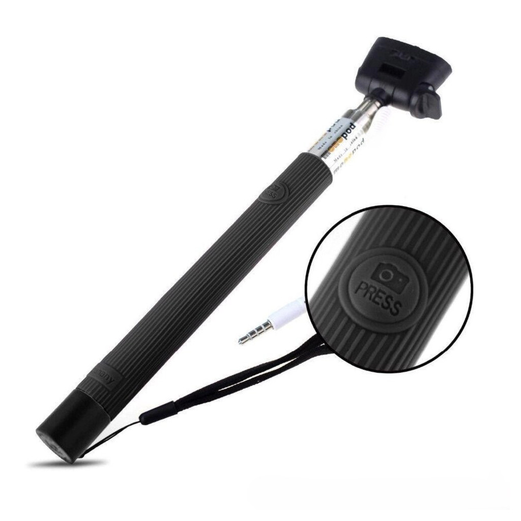 Его основным преимуществом перед моноподом bluetooth является тот факт, что его не нужно заряжать! Просто бросил в сумку и пошел! Для того, чтобы его начать использовать необходимо подсоединить провод в разъем наушников, после чего нажимайте кнопку на ручке монопода и делайте снимки!