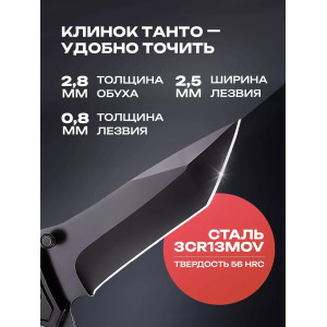 На звороті рукояті розташована кліпса для кишенькового/поясного носіння. Цей ніж не є холодною зброєю, тому що не відповідає багатьом ознакам Х.О.