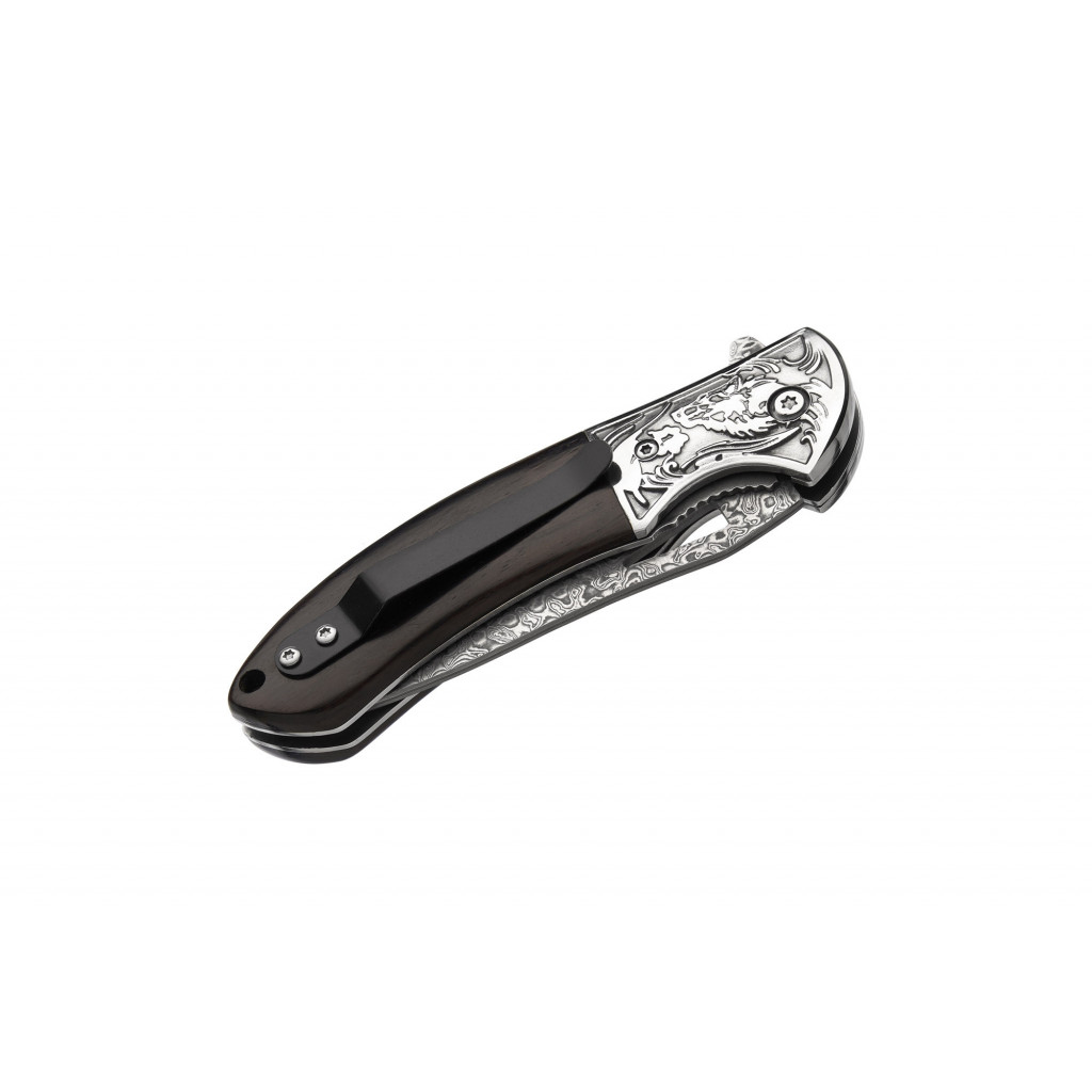 Узор дамаска — не просто украшение, а признак высокого класса стали и напоминание о традициях кузнечного искусства. Каждый такой рисунок уникален. Благодаря этому складной нож Grand Way DG 200 (дамаск) заметно выделяется на общем фоне.
