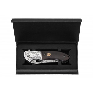 Grand Way представляет элегантный складной нож, предназначенный для тех, кто ценит качество, стиль и внимание к деталям. Его клинок выполнен из настоящей дамасской стали — прочного многослойного материала, известного своей долговечной остротой и характерным волнистым рисунком.