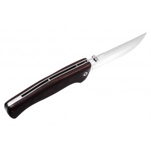 Grand Way 628 – это не просто складень выполненный в классическом дизайне. В его конструкции реализована эргономичность, невозможная без прогресса технологий. Отполированный в зеркало клинок и темная цветовая гамма древесины с небольшими заклепками делают этот нож притягательным и сразу просящимся в руки.