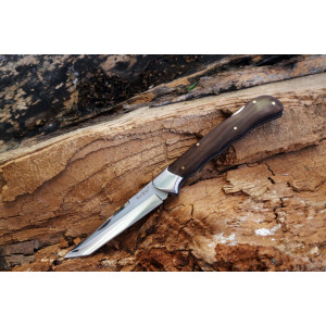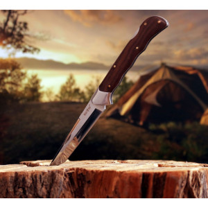Неувядающая классика в современном исполнении. Рукоять ножа эргономической формы, довольно надежно и удобно ложится в руку. Рукоять ножа образована стальными лайнерами и имеет красивые деревянные и стальные накладки. Древесина, используемая для изготовления накладок, прошла специальную обработку, устойчива к влаге, гниению и вредителям. Теплые на морозе и приятные на ощупь накладки отлично гармонируют с полированным клинком. Нож оснащен довольно крупным клинком, типа "Танто" со скосом обуха.Такой тип клинка иногда еще называют "Модифицированный Танто". Зеркально полированный клинок изготовлен из стали 440С, которая довольно долгое время считалась лучшей для ножей, пока на смену ей не пришли новые дорогие высокотехнологичные сплавы. Но до сих пор это очень популярный и достойный ножевой материал. 440С - довольно твердая сталь, ножи из нее отлично режут и долго не тупятся. Нож оснащен замком Back Lock, одним из самых первых и известных замков, который иногда называют «позвоночник» за характерную металлическую часть замка, идущую вдоль всей «спины» рукояти ножа. Структура замка проста, но в тоже время очень надёжна. Тот самый «позвоночник» одновременно выполняет роль кнопки замка и стопора лезвия в открытом состоянии. Рычаг-коромысло проходит вдоль всей рукоятки и зацепляется специальным крючком за прорезь в «пятке» лезвия. Роль пружины выполняет тонкая пластина внутри рукояти. Стильный классический нож, с интересным клинком из отличной стали станет Вам надежным подспорьем на природе и в быту, а также замечательным подарком.
