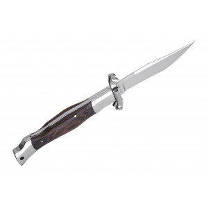 Дуже цікавоим елементом конструкції ножа є його складана гарда. Коли клинок знаходиться у складеному стані, гарда теж займає транспортне положення. Так вона не чіплятиметься за тканину кишені та не буде заважати швидко дістати ніж за потреби.
