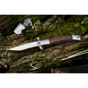 Рукоять ножа має просту форму та класичну конструкцію. Вона складається із сталевих лайнерів, вкритих дерев'яними накладками. Треба також відмітити темлячний отвір, розташований на рукояті.