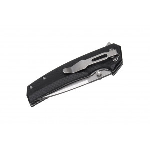 Сталева кліпса, розташована з правого боку рукояті, дозволяє надійно закріпити ніж на зрізі кишені. Також слід звернути увагу на встроєний у тильну частину рукояті карабін, що дозволяє підвісити ніж на спорядженні.