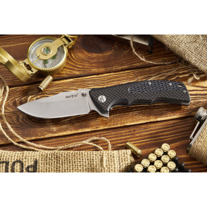 Grand Way WK 06197 (карбон) – досить оригінальний EDC ніж. Його широкий клинок дроп пойнт робить ніж максимально універсальним. Таким ножем можна не тільки упаковку розкрити або мотузку перерізати, але й переробити масу різних справ.