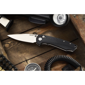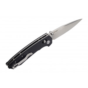 Руків’я відмінно ножа лягає у долоню. Лайнера руків’я сталеві. Накладки з композиту G10 мають текстуру, що підвищує комфорт та надійність утримання ножа під час роботи. Міцність та надійність самого композиту G10 давно і добре відомі і не потребують додаткових рекомендацій. Наявність якісно виконаних накладок з цього матеріалу в сучасному ножі – скоріше правило гарного тону, чим щось виняткове