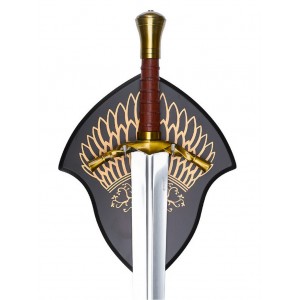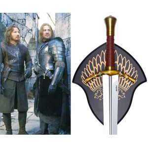 Эта сувенирная копия, довольно-таки близко повторяет один из экземпляров оружия из фильма «Властелин Колец» Питера Джексона.Меч Боромира, сына наместника Гондора. Образ этого воина, созданный Шоном Бином на экране, пришёлся по нраву зрителям, и сделал этого актёра по-настоящему всемирно популярным. У вас есть возможность украсить свой интерьер копией оружия, принадлежавшего его экранному герою. В отличие от многих сувенирных и фэнтезийных мечей, этот – выглядит очень практичным, фактически – исторически достоверным. Дизайнеры явно хотели показать, что это – меч настоящего бойца, проводящего свою жизнь в сражениях, а не статусная игрушка аристократа. И результат их работы оказался очень похож на реальные средневековые прототипы. Но вместе с тем, это именно тот самый меч Боромира из книги и фильма.