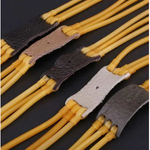 Потужна гума для рогатки зі шкіряною державкою та фіксуючими кульками для трижгутової рогатки. Запасна частина для спортивно-мисливської рогатки довжина – 150мм.