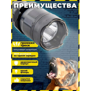 Електрошокер Police 1101 - один із найкращих у своєму класі за показниками потужності, надійності, компактності та ціни. При рекомендованому часі впливу, менше однієї секунди, дана модель шокера здатна вивести з ладу противника на час до 6 хвилин. А завдяки гучному та специфічному звуку розряду і яскравому ліхтарику, відлякує тварин.