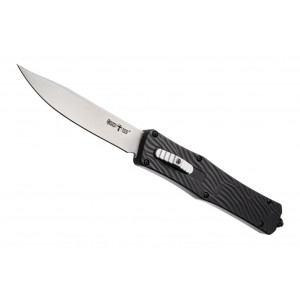 Фронтальний викидний ніж оснащений механізмом викиду клинка. Автоматика спрацьовує при зміщенні слайдера на бічній поверхні руків'я.