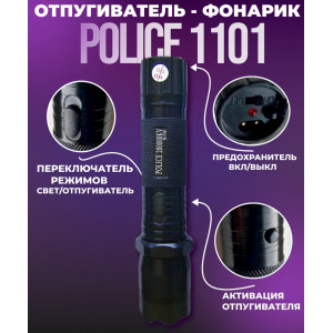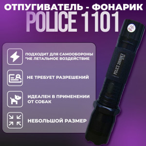 відлякувач Police 1101 - один із найкращих у своєму класі за показниками потужності, надійності, компактності та ціни. При рекомендованому часі впливу, менше однієї секунди, дана модель відлякувача здатна вивести з ладу противника на час до 6 хвилин. А завдяки гучному та специфічному звуку розряду і яскравому ліхтарику, відлякує тварин.