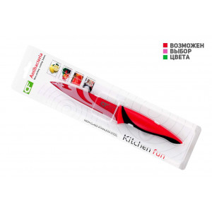 Дуже часто виникає ситуація, коли ніж треба взяти із собою. Це може бути пікнік, особистий ніж для офісної кухні або просто кухонний ніж у бардачку машини. Звичайно, можна взяти складаний ніж, але у них, як правило, клинок набагато коротший, та й мити їх не завжди зручно. Ножі в піхвах або чохлах часто є прерогативою ножів туристичних або мисливських, у масивних шкіряних піхвах з міцними мечами, але для того, щоб спорудити собі бутерброд або почистити яблуко, таке спорядження буде надлишковим.Компанія GrandWay пропонує вашій увазі компактні кухонні ножі з чохлом.Клинки цих ножів виготовлені зі сталі марки 420. Проста відпрацьована у виробництві сталь із чудовою стійкістю до корозії, непогано тримає заточування на продуктах і легко правиться практично всіма точилками. Строй самого клинка з плоскими спусками від обуха розрахований на комфортний різ продуктів та малий кут заточування.Яскраве покриття на клинку не тільки робить ніж стильним і ошатним, але ще додатково захищає ніж від можливої корозії, не дає загубитися ножу, що впав на пікніку, і покращує різ, не даючи продуктам налипати на клинок.Надійні пластикові піхви-чохол не призначені для носіння на тілі, зате роблять ніж безпечним і дозволяють переносити його не загортаючи ні в які папірці або пакети. Ніж просто можна покласти разом із продуктами не побоюючись, що гостре лезо проріже сумку або поріже руку. Так само, при зберіганні ножа в ящику кухонного столу разом з рештою посуду, такий чохол убереже край від затуплення.Рукоятка виготовлена з пластику з м'якими вставками, що не ковзають, що забезпечує впевнене утримання і комфортну роботу.Прекрасний універсальний ніж із кольоровим покриттям клинка. Прекрасно підійде для більшості робіт на пікніку, чи це чищення фруктів або коренеплодів, так і нарізка напівфабрикатів і бутербродів. Справжнісінький універсальний ніж стильного дизайну.