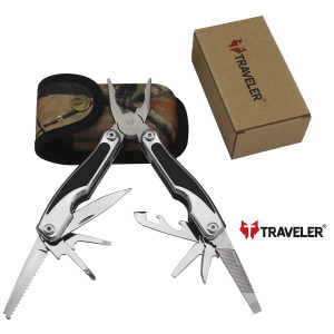 Мультинструменти ТМ Traveler - чудова альтернатива мультиінструментам ТМ Ganzo, т.к. мають високу якість виконання при значно меншій ціні. Мультиінструмент ідеально лежить в руці, а прогумовані вставки забезпечують протиковзкий ефект. Мультинструмент Traveler буде незамінним помічником у подорожі, поході, на рибалці, у побуті.