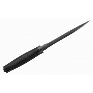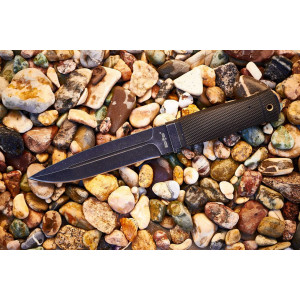 Ніж оснащений досить великим і потужним мечем типу Drop Point зі зниженням лінії обуха. Вістря леза знаходиться на осі докладання сили при уколі, такий клинок однаково добре ріже і коле. Клинок має фальшлез на обусі, яке утворене спусками без заточення. Фальшлезвіє допомагає клинку при уколі входити в матеріал, що розрізається. Товщина клинка в 5 мм, центральні частини, призначені для збільшення міцності клинка - все це говорить про те, що при проектуванні ножа враховувалися нелегкі умови експлуатації. Феноменальна міцність ножа забезпечується тим, що лезо та хвостовик виконані з єдиної смуги сталі. Лезо ножа виготовлено зі сталі 440С, дуже популярного та гідного ножового матеріалу. 440С – досить тверда сталь, ножі з неї відмінно ріжуть і довго не тупляться. Клинок ножа має чорне покриття антивідблиску, яке крім свого основного призначення — не створювати відблисків, буде служити додатковим захистом від корозії.