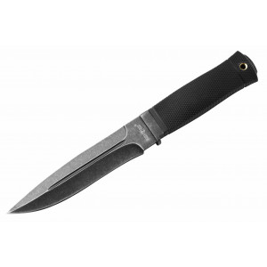 Рукоять ножа має прямокутний переріз і виконана із сучасних синтетичних матеріалів, стійких до агресивних середовищ. «Шорстка» та м'яка структура рукояті забезпечить надійне зчеплення з рукою. У рукояті передбачено отвір під темляком. Наявність темляка (мотузкова або паса петля) в ножах з рукояткою без обмежувача захистить пальці руки від зісковзування на лезо клинка. Крім цього, темляк дозволяє вивільнити пальці руки для виконання будь-якої роботи, не випускаючи ніж з руки. На кінці рукояті є металеве навершие. У комплект поставки ножа входять поясні піхви з якісної натуральної шкіри найвищого гатунку.