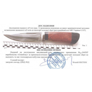 Розміри клинка відразу налаштовують на серйозний лад. Довжина клинка – 150 мм, ширина – 33 мм, товщина в обусі – 2,3 мм. />Такий приємно вражаючий, гарний ніж безперечно стане не тільки надійним помічником будь-якого справжнього охотника, але й чудовим подарунком!