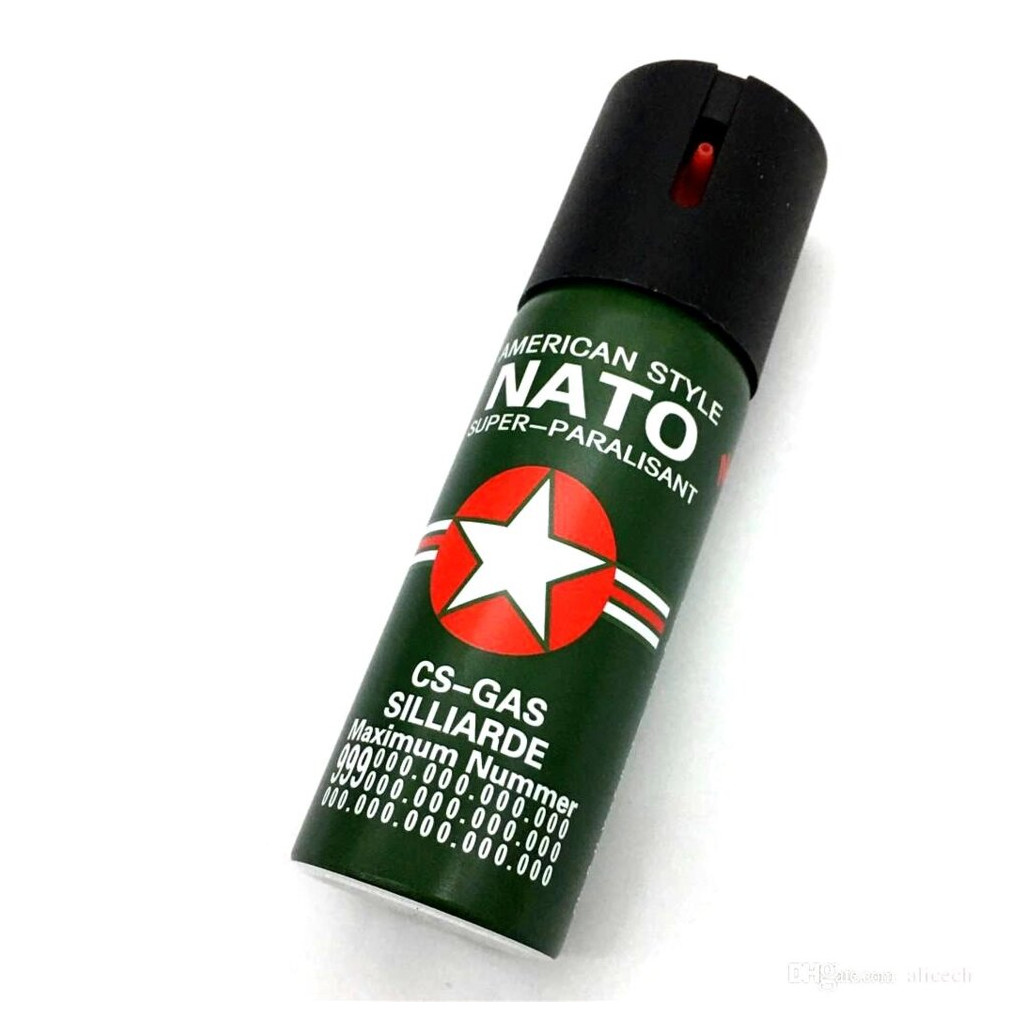 Nato 60 мл - портативний перецьовий балончик з розпиленням аерозольного типу. Через 10с після потрапляння в обличчя супротивника гарантовано знешкоджує його на 20-30 хвилин.
