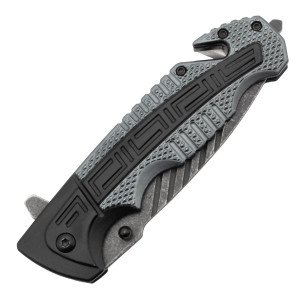 Ніж оснащений пружним викидом клинка. На кінці рукояті розташований склобій та стропоріз, що відносить ніж не тільки до тактичних, а й до ножів рятувальника. На звороті рукояті розташована кліпса для кишенькового/поясного носіння. На ніж є висновок Харківського НДІ судових експертиз ім. Бокаріус про неналежність до холодної зброї.