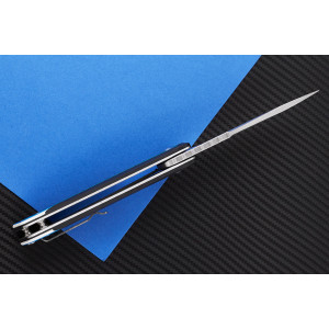 Сам клинок форми drop point має прямі спуски майже від обуха та акуратно зроблені невеликі підводи. Виготовлений клинок із якісної інструментальної сталі D2. Довжина клинка 90 мм, а товщина – цілих 4 мм. При таких характеристиках, та ще й з огляду на сталь D2, можна з упевненістю стверджувати, що цей клинок впевнено впорається з найважчою роботою і різати при цьому буде чудово.