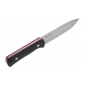 Руків'я ножа – фултанг із накладками з G10. Текстура накладок дає достатнє зчеплення з ладонею. При цьому сама форма руків'я дозволяє активно працювати ножем, не втомлюючи та не наминаючи руку.